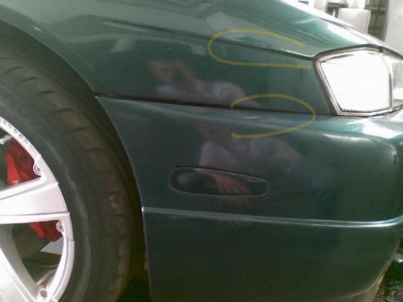 zdjęcia 1a 1b pokazują defekty na karoserii oraz złe spasowanie zderzaka.
