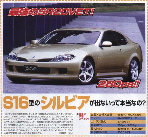 Za to ciekawy jest silnik SR20VET występujący w XTrialu na niektórych rynkach. Jest to SR20 z variable valve timing and lift i z turbo. Dzięki vvl (nie mylić z vvt) SR20VE osiąga 200KM a VET 280KM w serii. Ciekawe czy dało by się taki silnik wstawić do S14.
