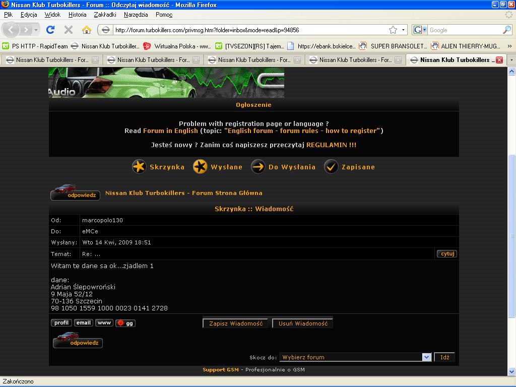 Nie wiem czy w ogóle chce mi się na to odpisywać ale odpisze. Czy to nie jest tak, że Tobie jako moderatorowi tego forum powinno bardziej zależeć na tym żeby na forum klubowym wszyscy nie traktowali się jako oszustów?? I nie powinieneś pilnować żeby ewentualnych oszustów stąd wywalać ? żenuaaaabielakxxx pisze:A co do lawety to trzeba bylo najpierw pojechac i sprawdzic jaki jest stan rzeczywisty auta, macie sami nauczke .