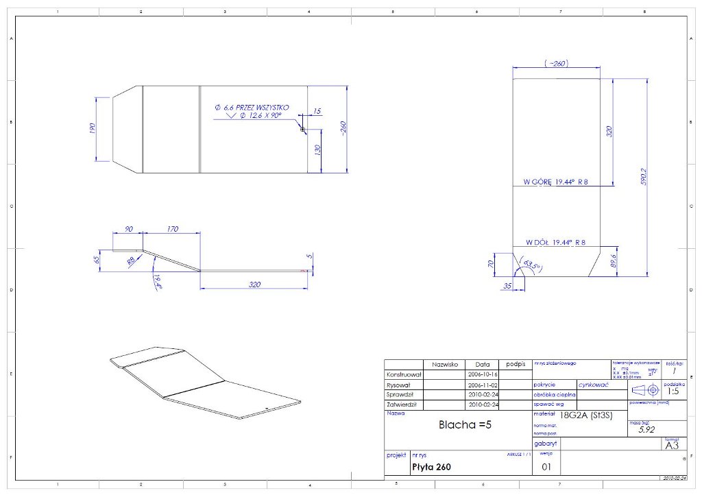 zaznaczyłem krawędzie i miejsce przetłoczenia na stabilizator i punkty mocowania