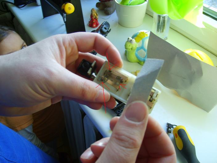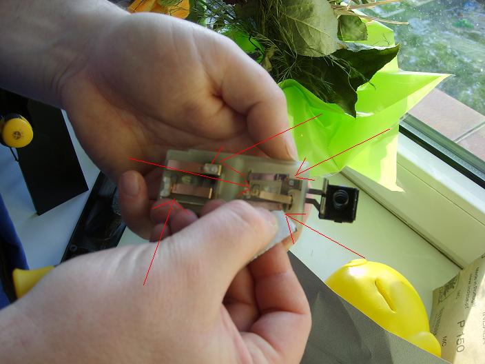 następnie szczałkami zaznaczyłem styki takie małe półkola na blaszkach po wyczyszczeniu drobnym papierem ściernym lub draską z zapsów