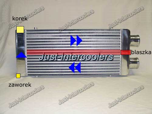 1 - tam gdzie sa wloty/wyloty - wstawic/wspawac pomiedzy nimi w srodku blaszke dzielaca IC na polowe - chodzi o to zeby ciepla woda nie byla wciagana od razu do wylotu. Dzieki temu, jezeli wlot wody bylby na dole - woda wedrowala by przez cala dolna polowe tego wynalazku, zakrecala by sobie z drugiej strony (tam bez blaszki dzielacej tam gdzie nie ma wlotow) i wracala by gorna polowa do wylotu.