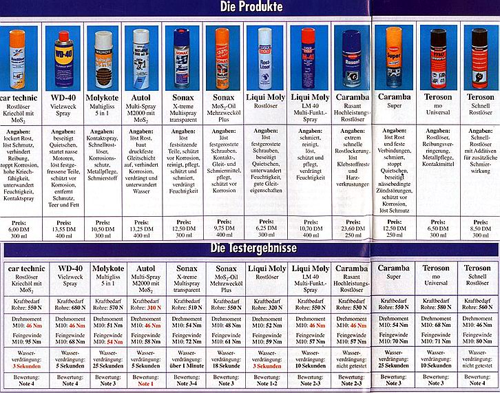 Praktycznie preparaty WD 40, Teroson (car technic u nas nie stosowany) są zupełnie obojętne, ani nie szkodzą ani nie pomagają. Narażają nas jedynie na wydatki i ubrudzenie rąk.